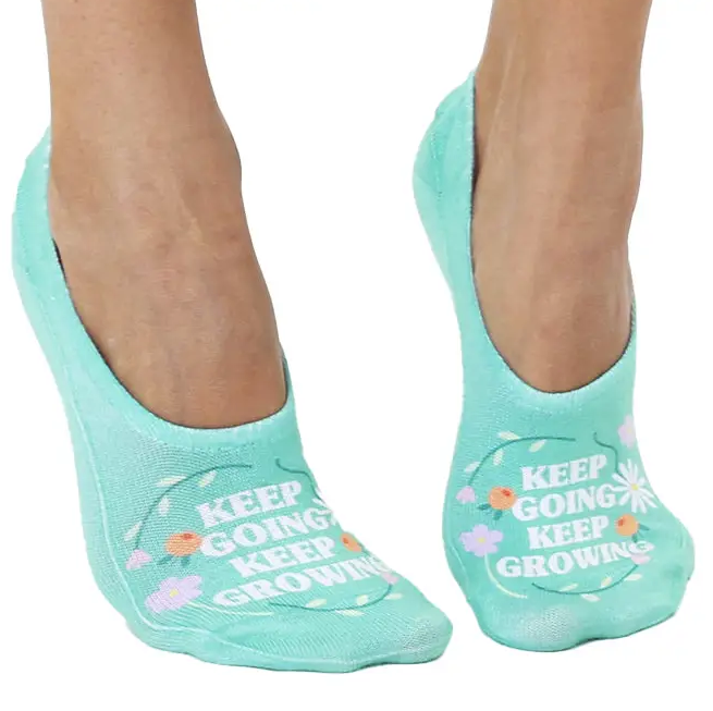"Keep Going Keep Growing" - Green No Show Socks