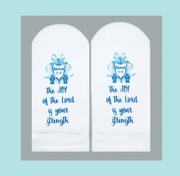 Standing On The Word Socks - Nehemiah 8:10 Ginger Jar Chinoiserie Crest