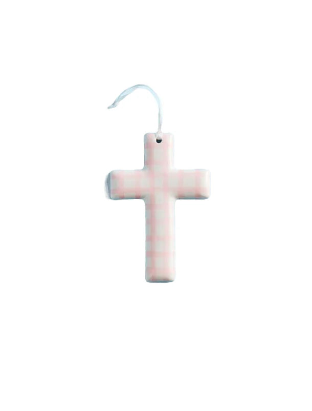 Watercolor Baptism Pink Cross Floral Crest Canvas