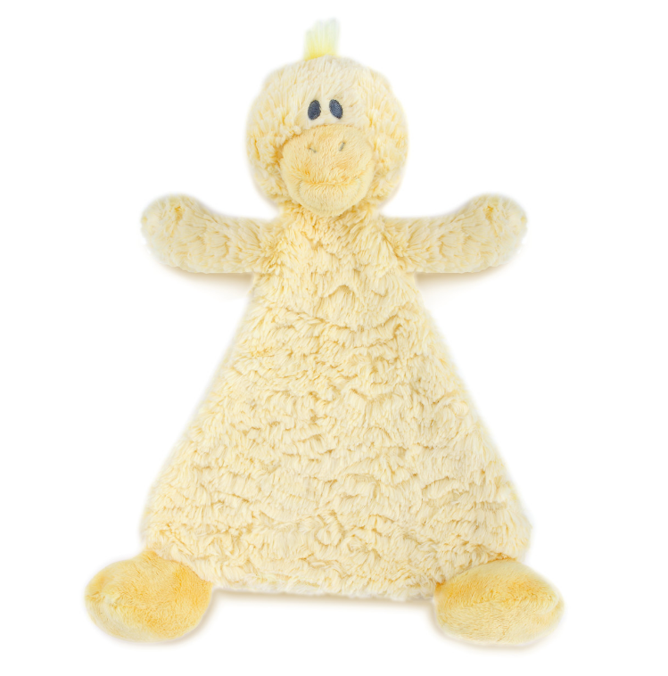 Designed with an easy-to-cuddle shape, uniquely-soft textures and a playful rattle, this Daddles Duck Rattle Blankie is made for security and comfort. With our menagerie of cozy pals, there's a just-right-friend for every child.