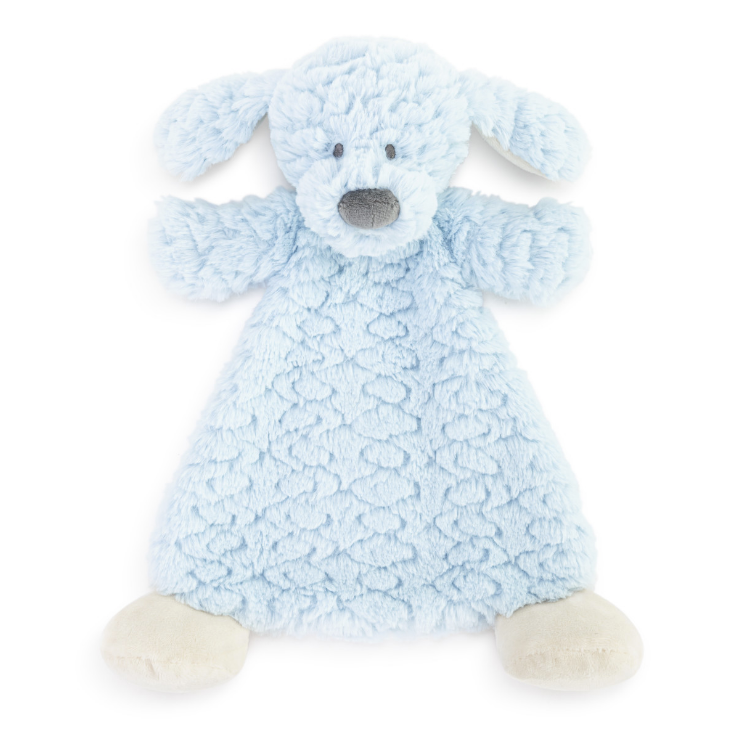 Designed with an easy-to-cuddle shape, uniquely-soft textures and a playful rattle, this Duke Dog Rattle Blankie is made for security and comfort. With our menagerie of cozy pals, there's a just-right-friend for every child.