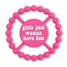 Our baby teething toy is a silicone teether that will soothe sore gums and provide sensory stimulation. The Happy Teether is easy to grip from any angle and gives the right amount of resistance to provide pain relief for early teeth.