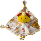 This cutie has embroidered rosy cheeks and a sweet smile. Measures approximately 10"x10". The value price point has broad appeal. Coordinates with matching rattle. Care for by washing in cold water on a gentle cycle, air drying; soft toy made to strict quality standards to meet or exceed US Safety requirements.