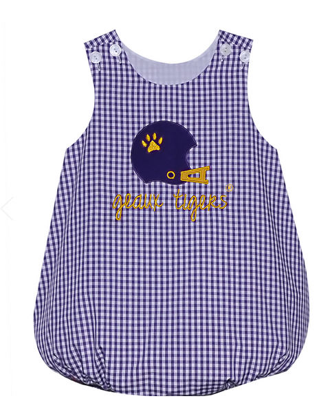 Helmet Applique Boy Bubble - Purple/Gold