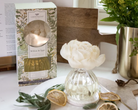 Our Flower Diffuser includes your favorite Greenleaf fragrance oil and a sola paper flower that emits a beautiful, blooming scent for up to 60 days! As the fragrance oils are absorbed through the wick, the flower begins to “bloom,” slowly emitting the fragrance and eventually resembling real flower petals. With the neutral color of the oil and the large flower, it will enhance and complement any space.