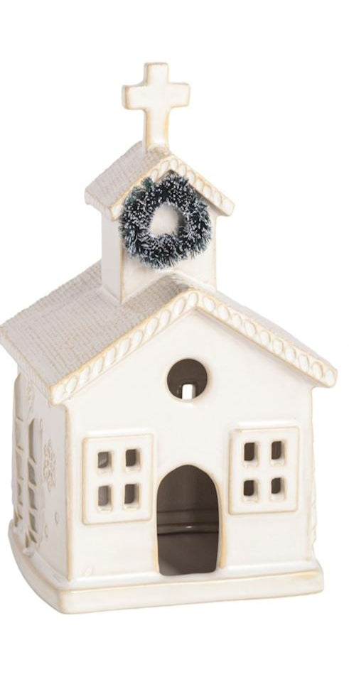 Bring a touch of charm and warmth to your holiday décor with these delightful Ceramic Church Sitters. Crafted from milk-glazed stoneware, each piece showcases intricate bottle brush wreath or tree details, adding a festive flair.