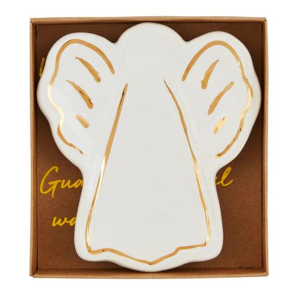 The Stripe Wing Angel Tidbit Dish is a stunning piece made from high-quality stoneware. Its unique angel shape adds a touch of elegance to any table setting or home decor. The dish features a hand-painted electroplate rim, which adds a beautiful and eye-catching detail. Made from dolomite, this tidbit dish is not only visually appealing but also durable and long-lasting. With dimensions of 5" x 4 1/2", it is the perfect size for serving small snacks, candies, or even jewelry. Whether you're hosting a party or simply looking for a charming addition to your kitchen, the Stripe Wing Angel Tidbit Dish is a must-have item.