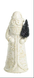 Bring festive cheer to your holiday decor with this charming White Santa Sitter. Crafted from milk-glazed stoneware, it features delightful textured relief and in-mold details, holding a classic bottle brush Christmas tree. Available in two sizes—small (9" x 3 3/4" diameter) and large (11" x 4 1/2" diameter)—this playful Santa adds a cozy, whimsical touch to any space. Perfect for tabletops, mantels, or shelves, it’s sure to spark smiles and holiday spirit all season long.