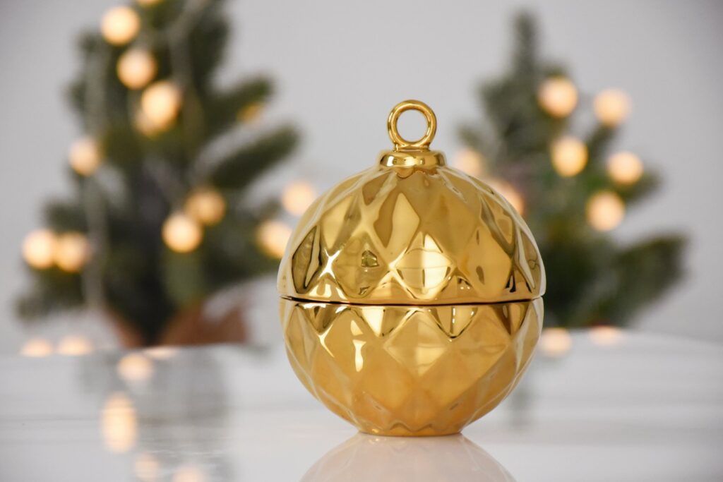 Great for serving candies, nuts, fruit, or condiments! A festive ornament shaped bowl in stunning and elegant metallic gold finished high-fired porcelain.