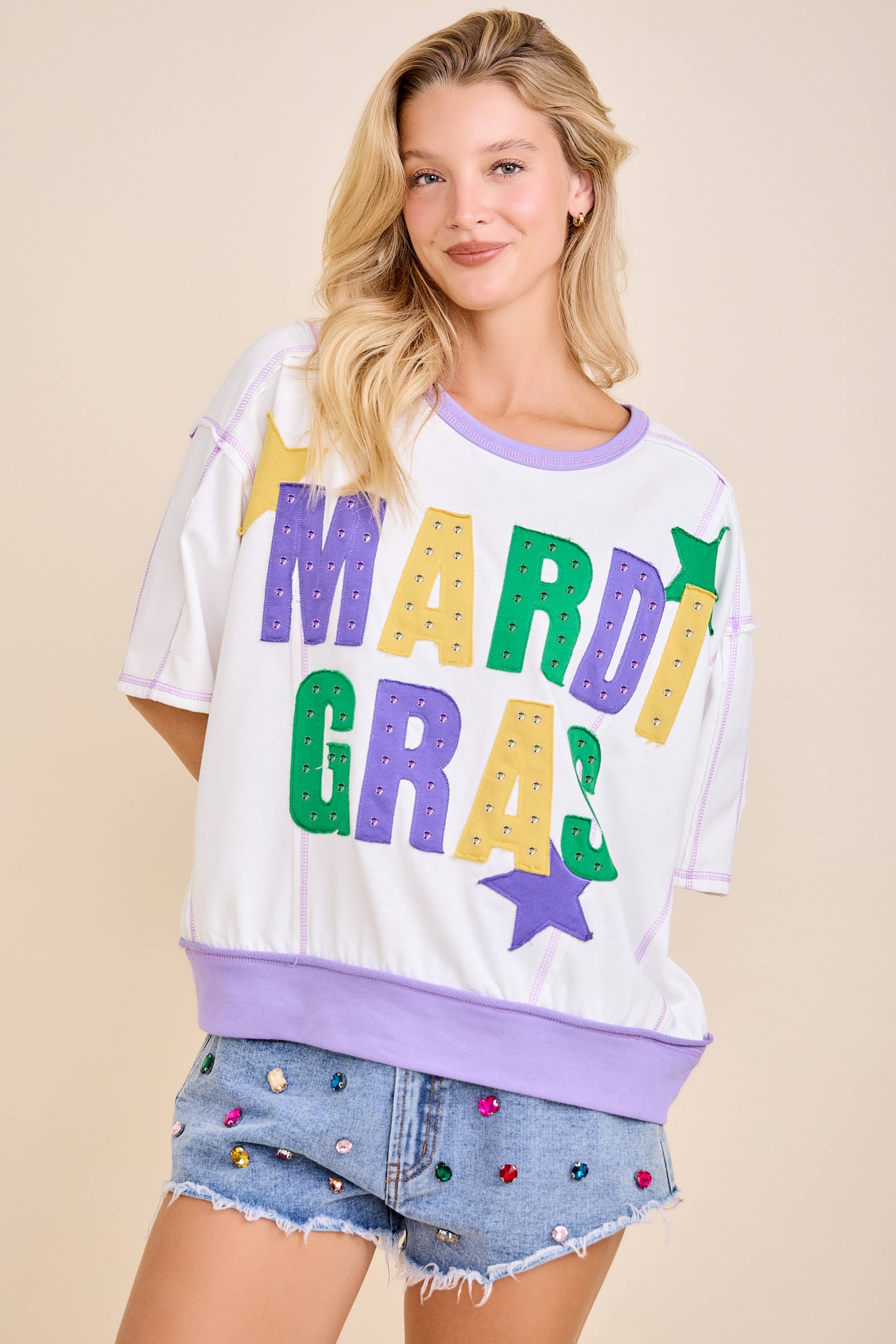 Mardi Gras Color Block Rhinestone Sweatshirt