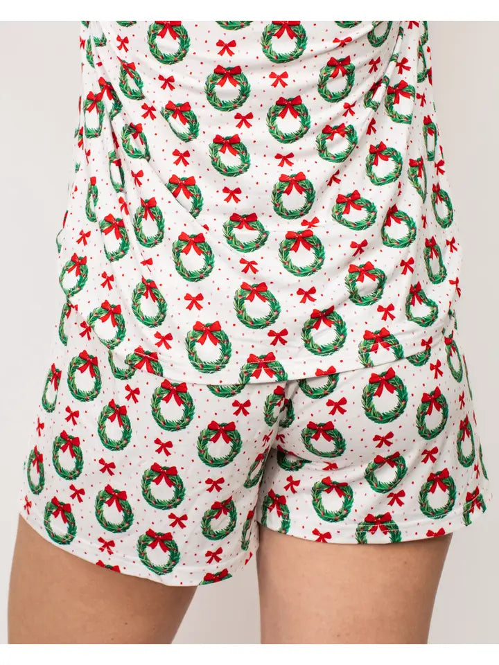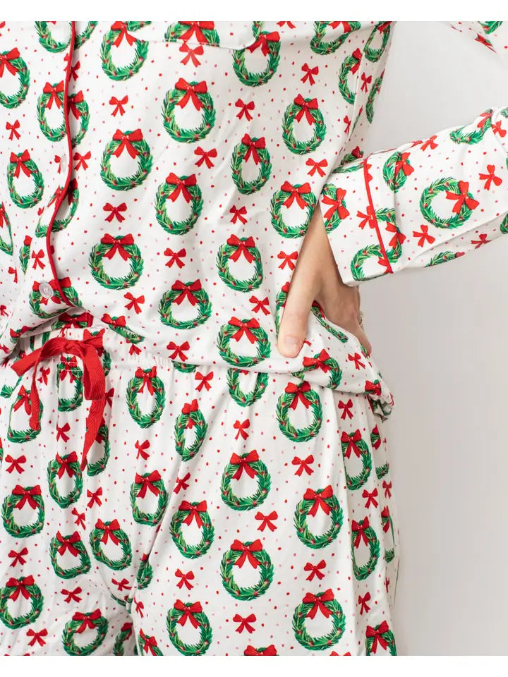 Clara Wreath Long Sleeve Button Up Sleep Shirt & Short Set