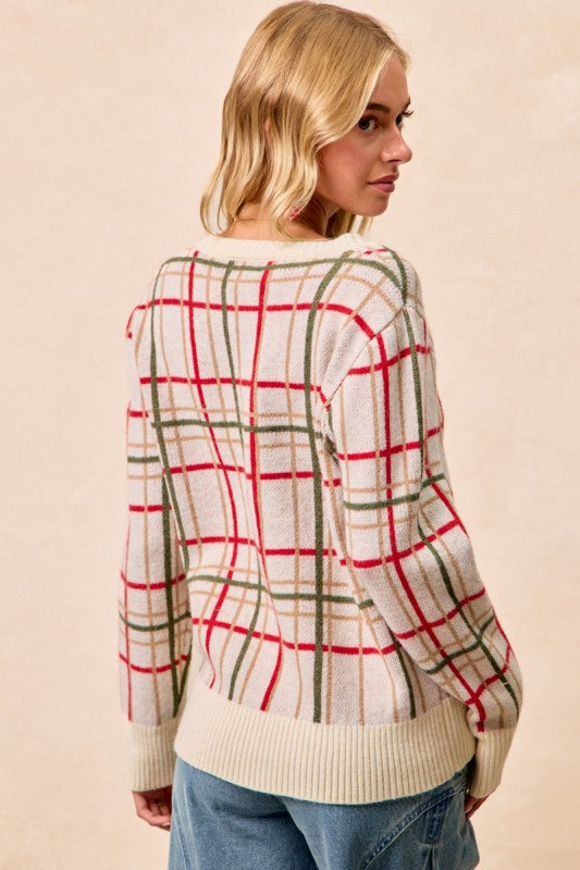 Get festive in the Holly Plaid Sweater, the perfect mix of cozy warmth and cheerful holiday spirit. Its traditional plaid pattern adds a classic touch to any holiday gathering, making you the merry standout at every party. Snuggle up in style and spread some joyful vibes all season long!