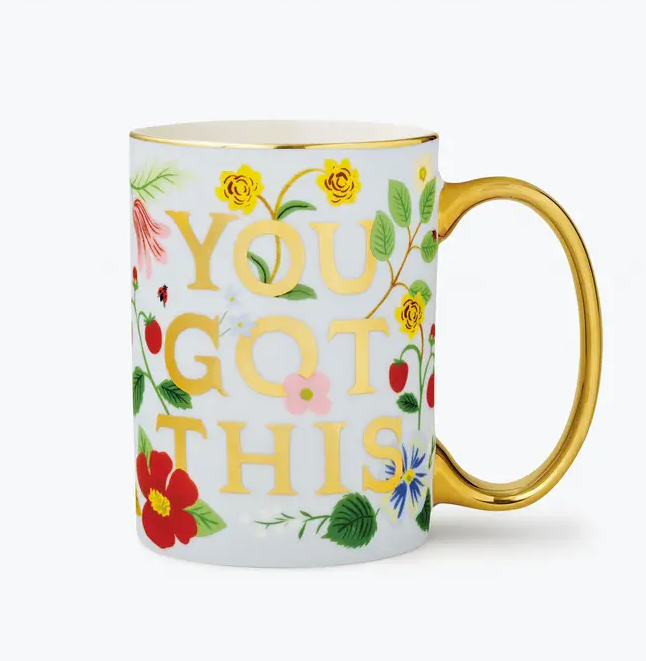 A cup of confidence every morning. Our porcelain mugs feature illustrated designs and a gilded rim and handle to add a little something special to your favorite beverage.