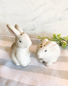 Meet Callie Bunny, your kitchen's cutest new duo! This whimsical salt and pepper shaker set brings playful charm to every meal. Featuring soft white and light pink hues, these adorable bunnies measure 3.5" and 2.5" tall, making them perfectly sized for your dining table or kitchen shelf. Whether you're seasoning dinner or simply displaying them as delightful décor, Callie and friend add a touch of bunny-powered joy to your culinary adventures.