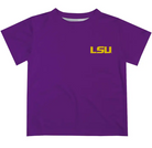 LSU Tigers Hand Sketched Impressions Boys T-Shirt. Purple "dry fit" type t-shirt featuring LSU on the front chest area, and the cutest LSU "sketched" design on the back.