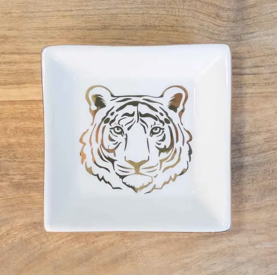 Tiger Trinket Dish White/Gold 4"