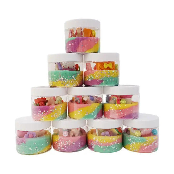 Bring a splash of magic to playtime with the Unicorn Simply Play Dough Jar! This colorful jar is packed with vibrant, all-natural play dough paired with charming unicorn-themed toys and trinkets. Perfect for sparking creativity and imaginative fun, it’s a wonderful gift for little unicorn fans eager to explore a rainbow of playful possibilities. The shelf life of our dough is 6+ months from the shipping period.