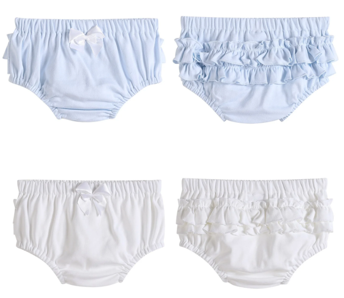 2 pc Set Light Blue and White Ruffle Knit Cotton Bloomers