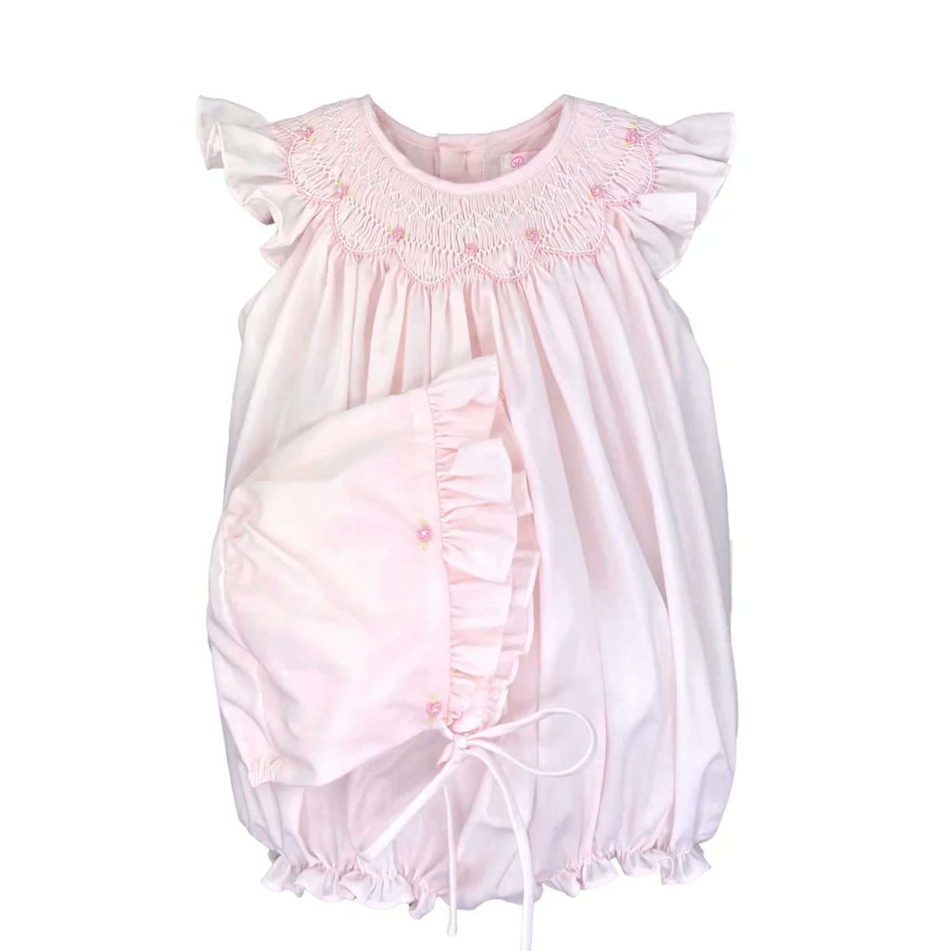 Bishop Smocked Rosebud Long Sleeve Gown With Bonnet