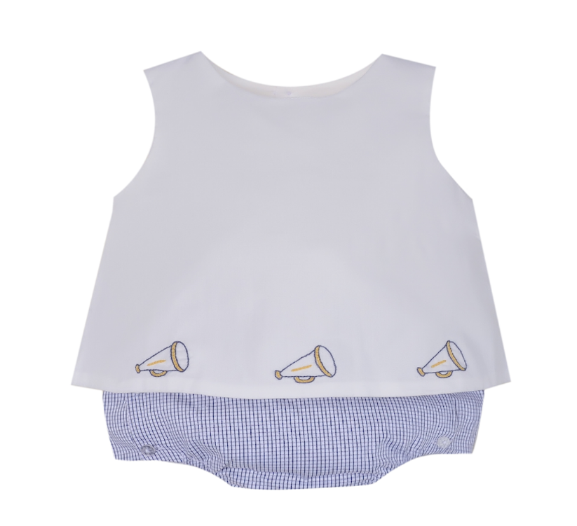 Get ready to cheer on for your team in this adorable diaper set! The hand-stitched megaphones makes this the perfect game day outfit!