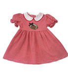 Cute red and white striped dress with white Peter Pan collar and delicate coordinating trim. Featuring a sweet embroidered football and black ribbon. Perfect for tailgating and football games. Great for cheering on the ULL Ragin Cajuns!
