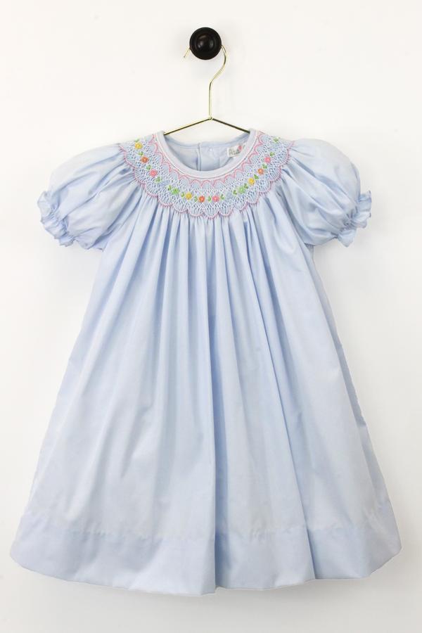 Blue Smocked Bishop Dress