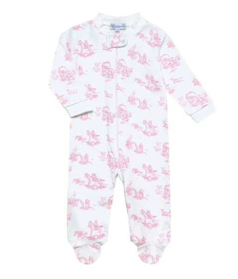 Pink Toile Zipper Footie