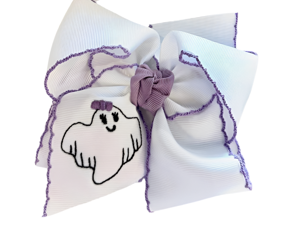 Embroidered Ghost Crochet Edge Bow, a charming addition to your child's accessory collection. This delightful hair bow is perfect for kids, adding a playful yet stylish touch to any outfit. The intricate embroidered ghost design coupled with the beautiful crochet edge showcases the brand's commitment to quality and creative design.