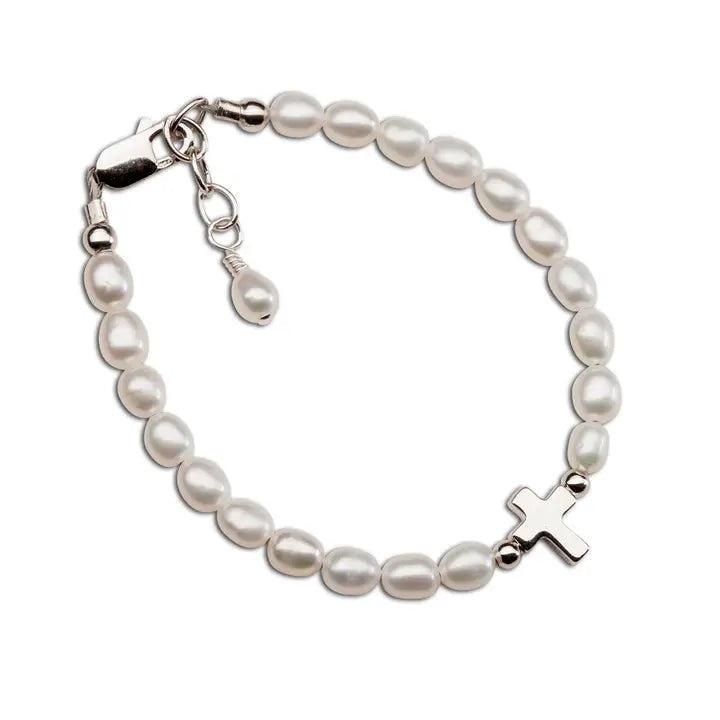 Amelia Girls Sterling Silver Pearl and Cross Baby Bracelet
