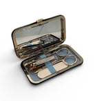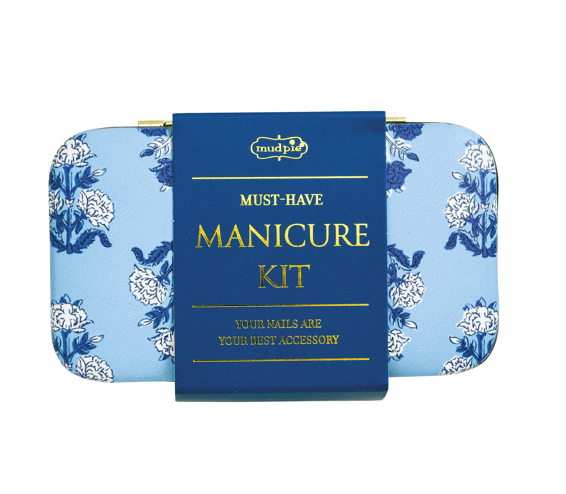 Blue Manicure Kit: Elevate your nail care routine with this stylish and compact 5-piece set, perfect for at-home or on-the-go grooming. The chic faux leather case, featuring a convenient interior mirror, securely holds all your manicure essentials. Inside, you'll find precision tweezers for flawless shaping, a durable emery board for smooth filing, sharp scissors for detailed trimming, and high-quality nail clippers for a clean cut. Measuring a portable 2 1/2" x 4 1/4", this kit is designed to fit effortlessly into your handbag or travel luggage, ensuring you always have the tools you need for impeccable nails. The elegant faux leather finish adds a touch of sophistication, making it an ideal gift for yourself or a loved one.
