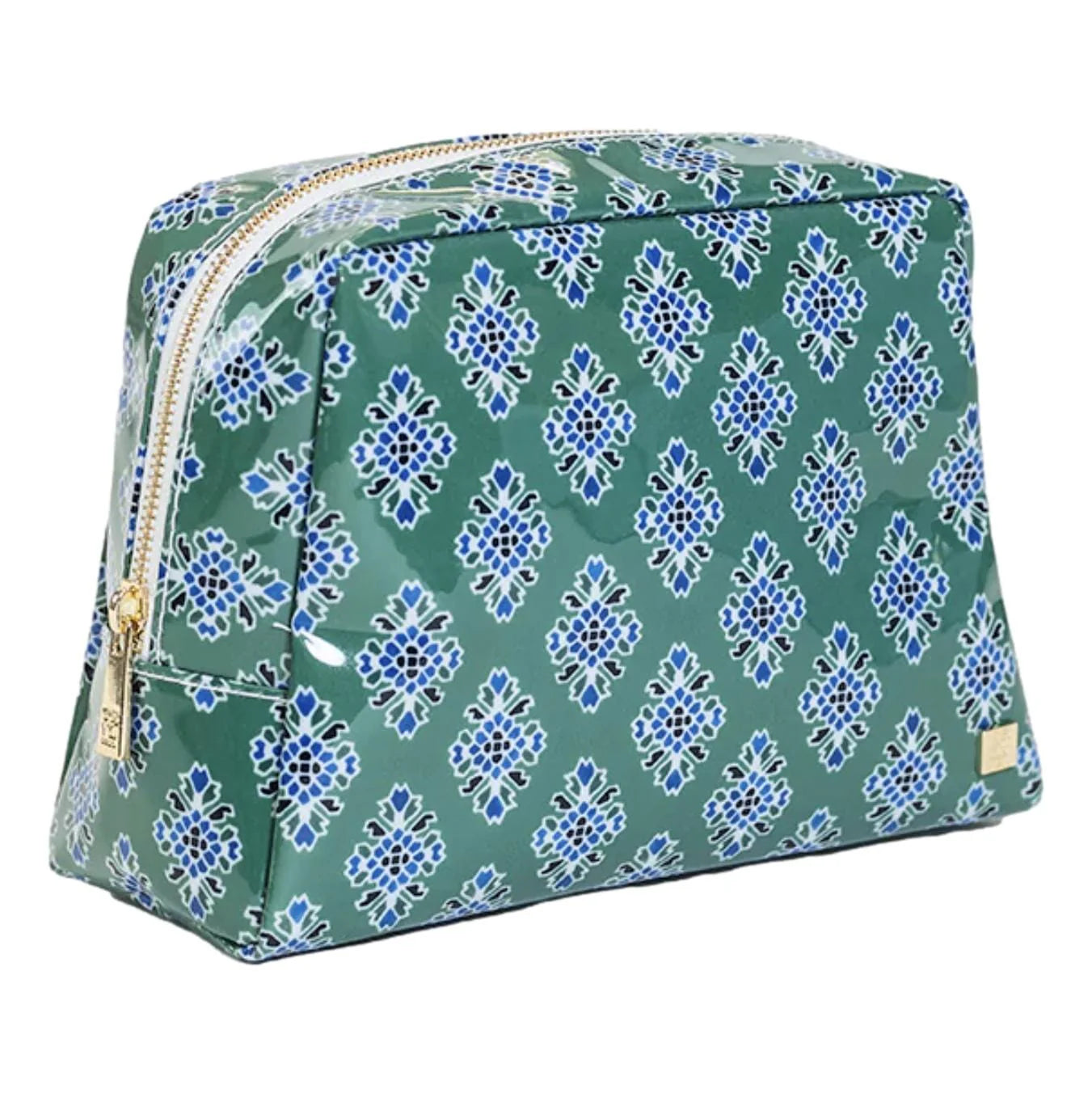 Keep your essentials stylishly organized with the ultra-lightweight Trvl Design Luxe Gloss Wash Bag – Madison. This glossy, water-repellent bag is perfect for makeup, brushes, skincare, jewelry, and more. Featuring a roomy interior and a handy back wall slip pocket, it’s your go-to catch-all for travel or daily life. Choose from two sizes, both with a shiny custom print, luxe gold metal closure, and easy-to-clean, stain-resistant material. Stay fabulous while keeping messes at bay—just wipe clean and go!