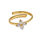 Inspired by the blooming dogwood flower, our Dogwood Ring is a symbol of beauty and faith. This stunning ring is crafted with a waterproof, stainless gold plate and feature the elegant shape of a dogwood flower. Simulated Diamonds. ,4" Flower, Ring adjustable