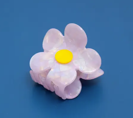 This flower elevated Cellulose acetate hair claw that is the favored material for most high-quality hair claw is best for pinning up thick hair with high quality material that shows the difference in material. Marbleized for style inspired by french hair accessories.