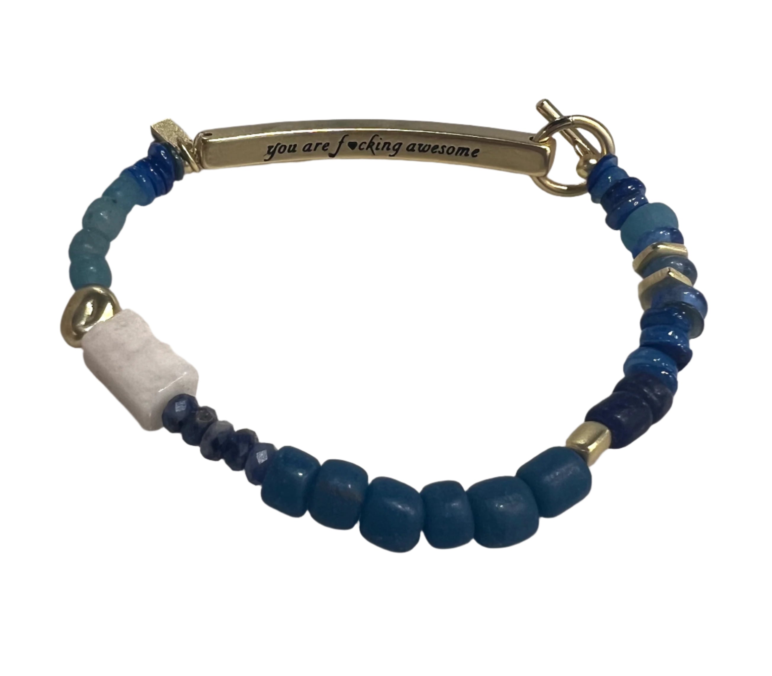 Hidden Message Bracelet - F_cking Awesome/Aquamarine/Gold