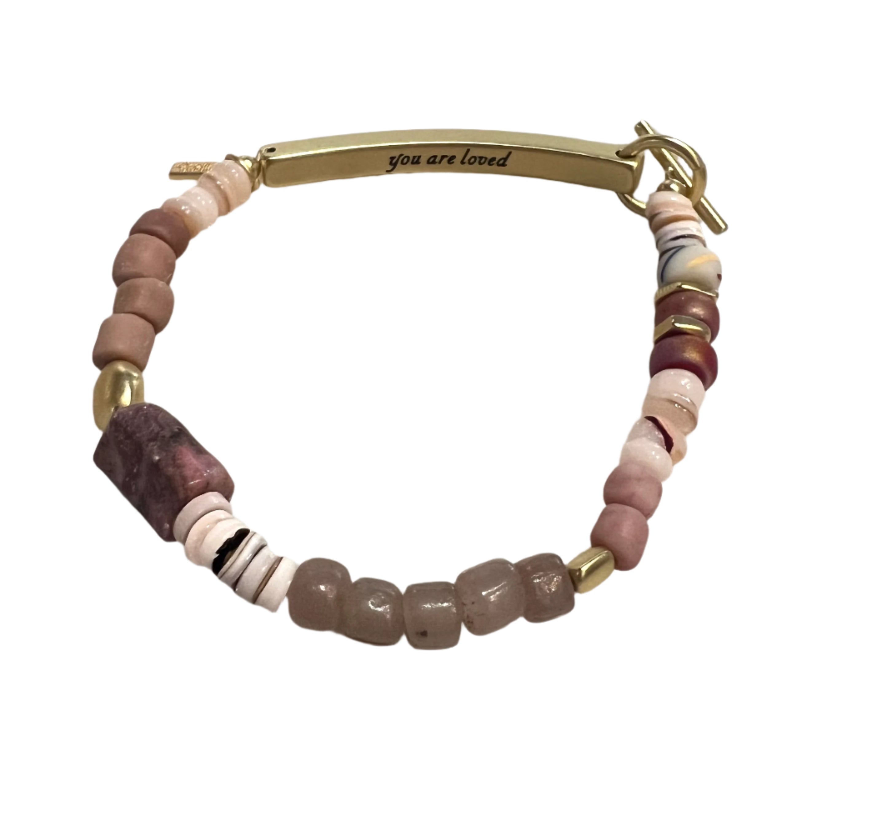 Hidden Message Bracelet - Loved/Rhodochrosite/Gold