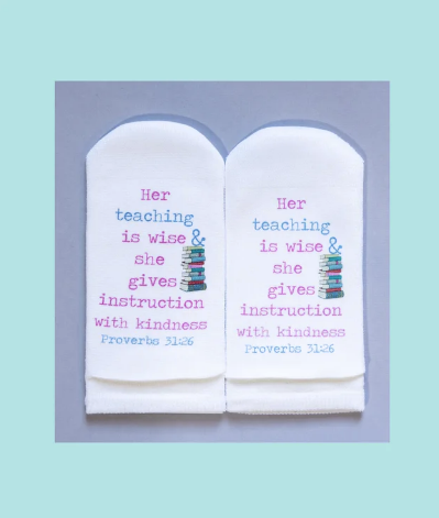 Books design with Standing on the Word verse shown on sole Proverbs 31:26 her teaching is wise & she gives instruction with kindness.