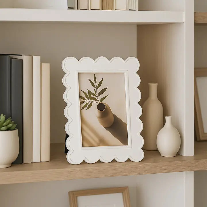 Display your favorite 4x6 memories in style with this charming resin picture frame featuring a whimsical scalloped edge design. The decorative border adds a touch of vintage-inspired elegance to any room, making it perfect for cherished photos, artwork, or special moments. Lightweight and durable, this frame brings personality to shelves, desks, or nightstands. A delightful way to celebrate the memories that matter most!