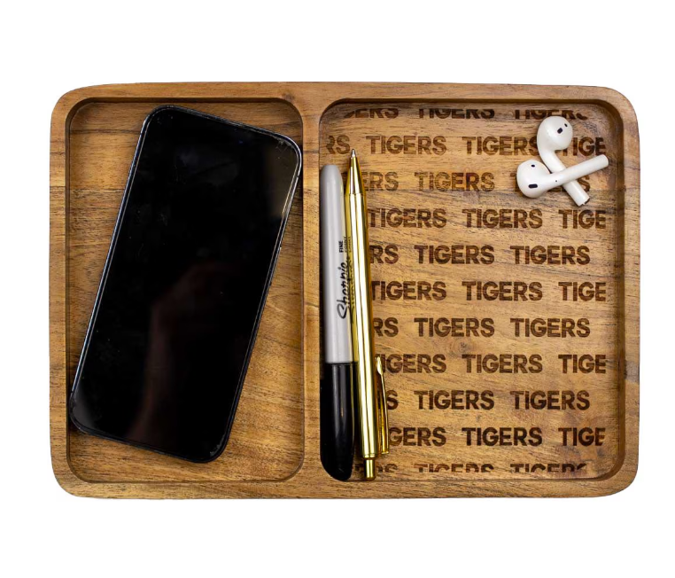 Tigers Etched Wood Valet Tray