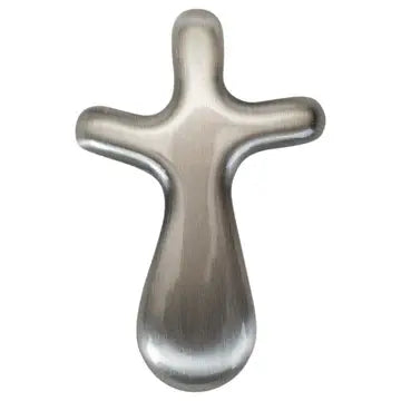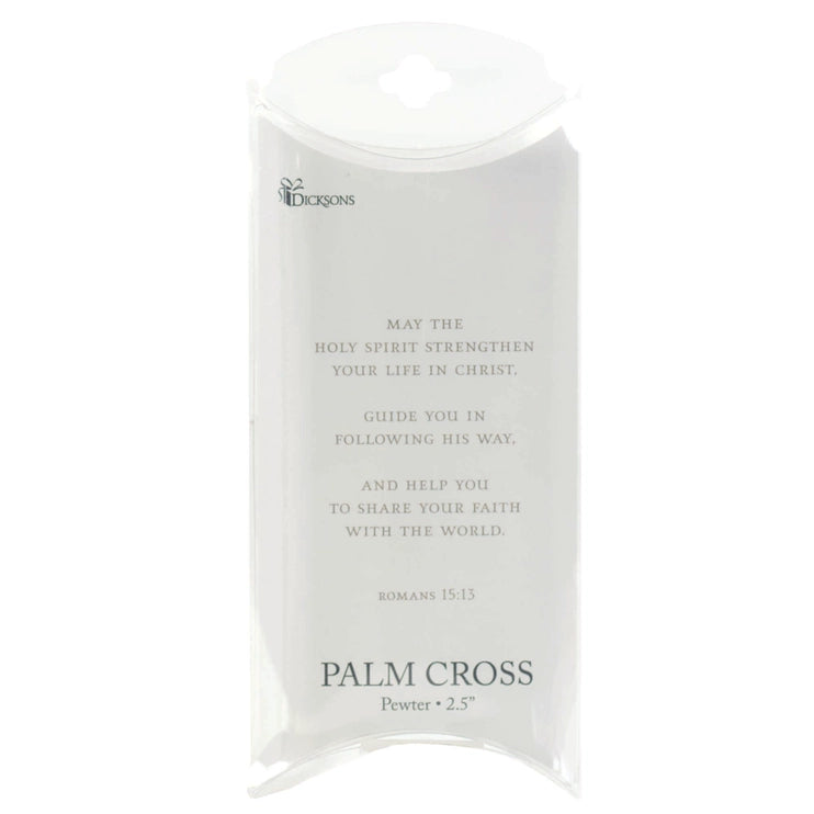 This Unique Little Cross Is Curved To Fit Just Right In Your Palm. My First Communion Is Printed On The Front Of The Gift Packaging, While The Back Shows: May The Holy Spirit Strengthen Your Life In Christ, Guide You In Following His Way, And Help You To Share Your Faith With The World. Romans 15:13. Made Of Solid Zinc Alloy Metal With A Brushed Pewter Tone Finish. Size Is 2.5 High x 1.5 Wide.