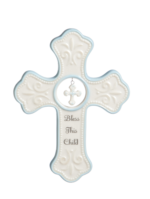 Watercolor Baptism Pink Cross Floral Crest Canvas