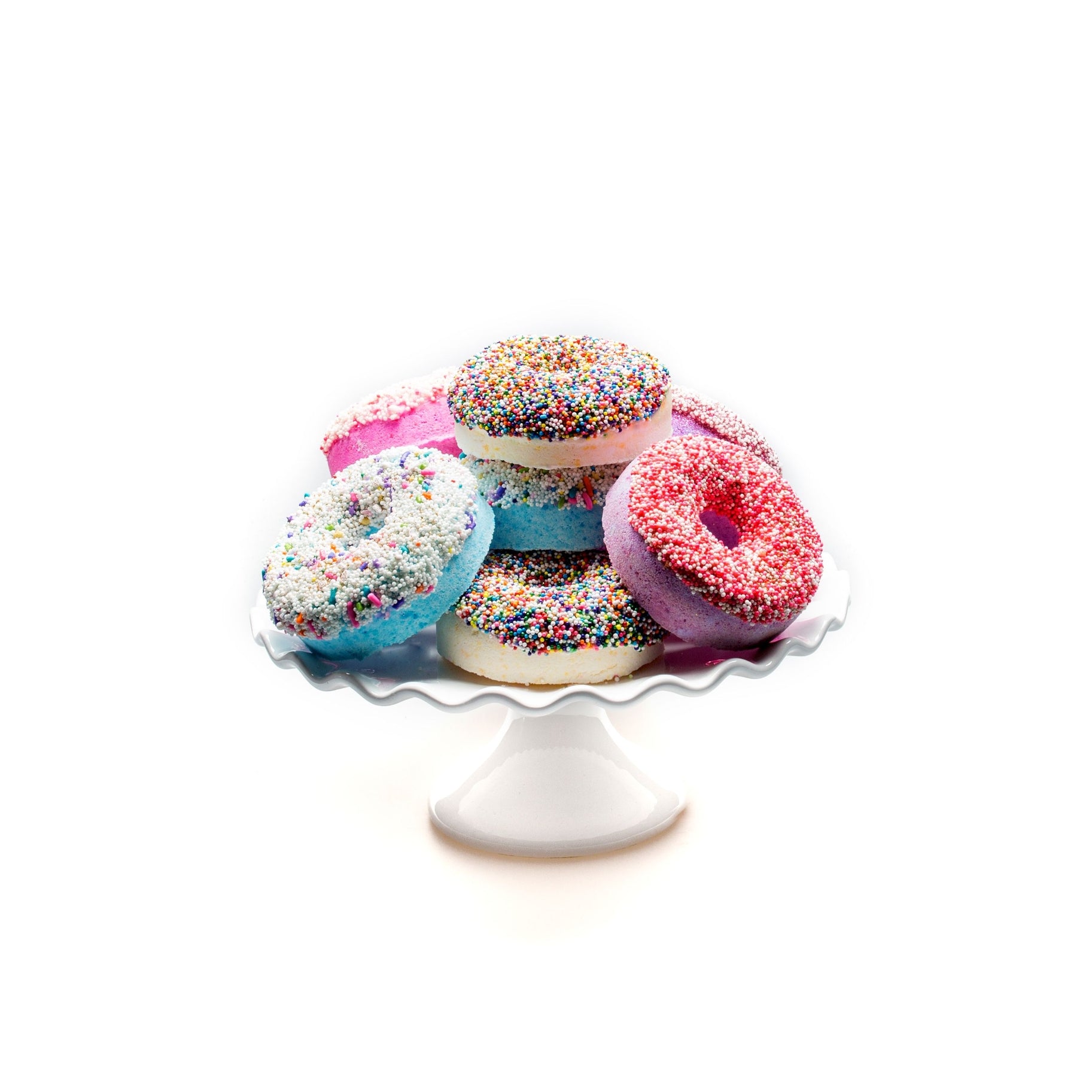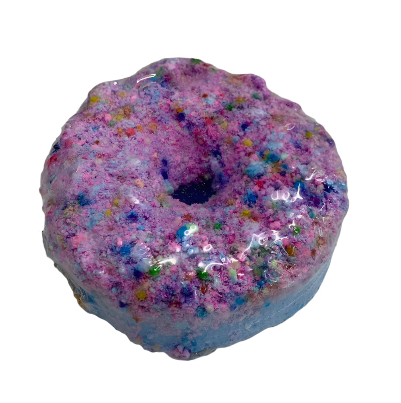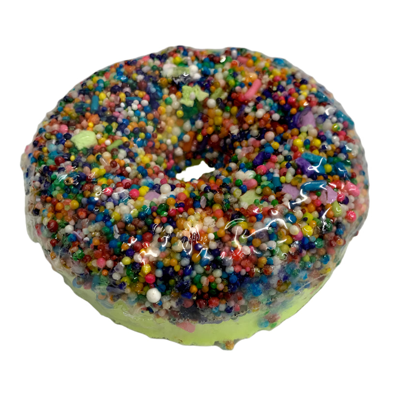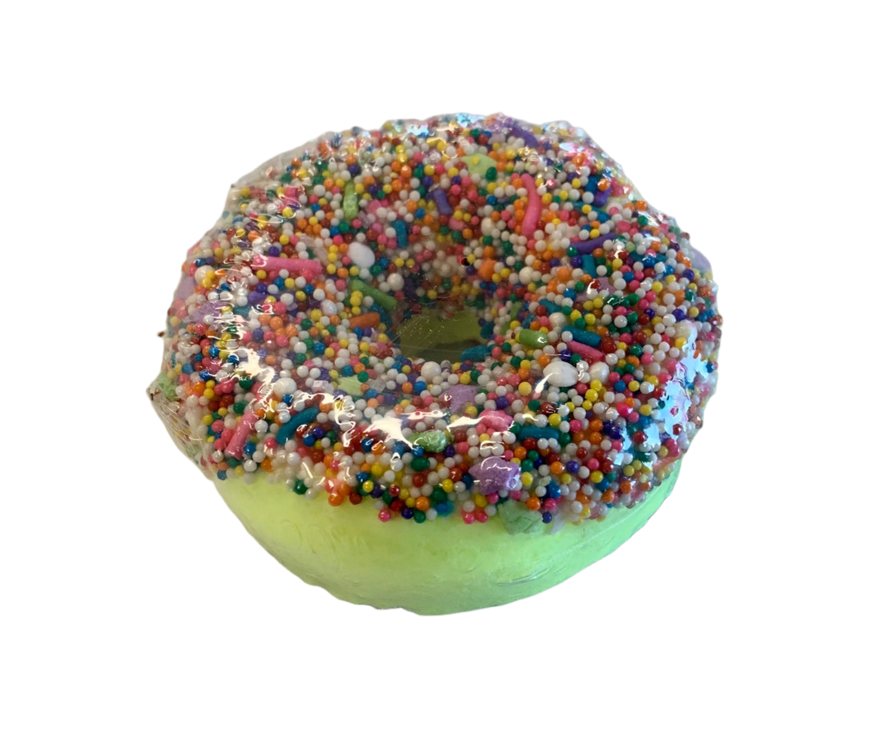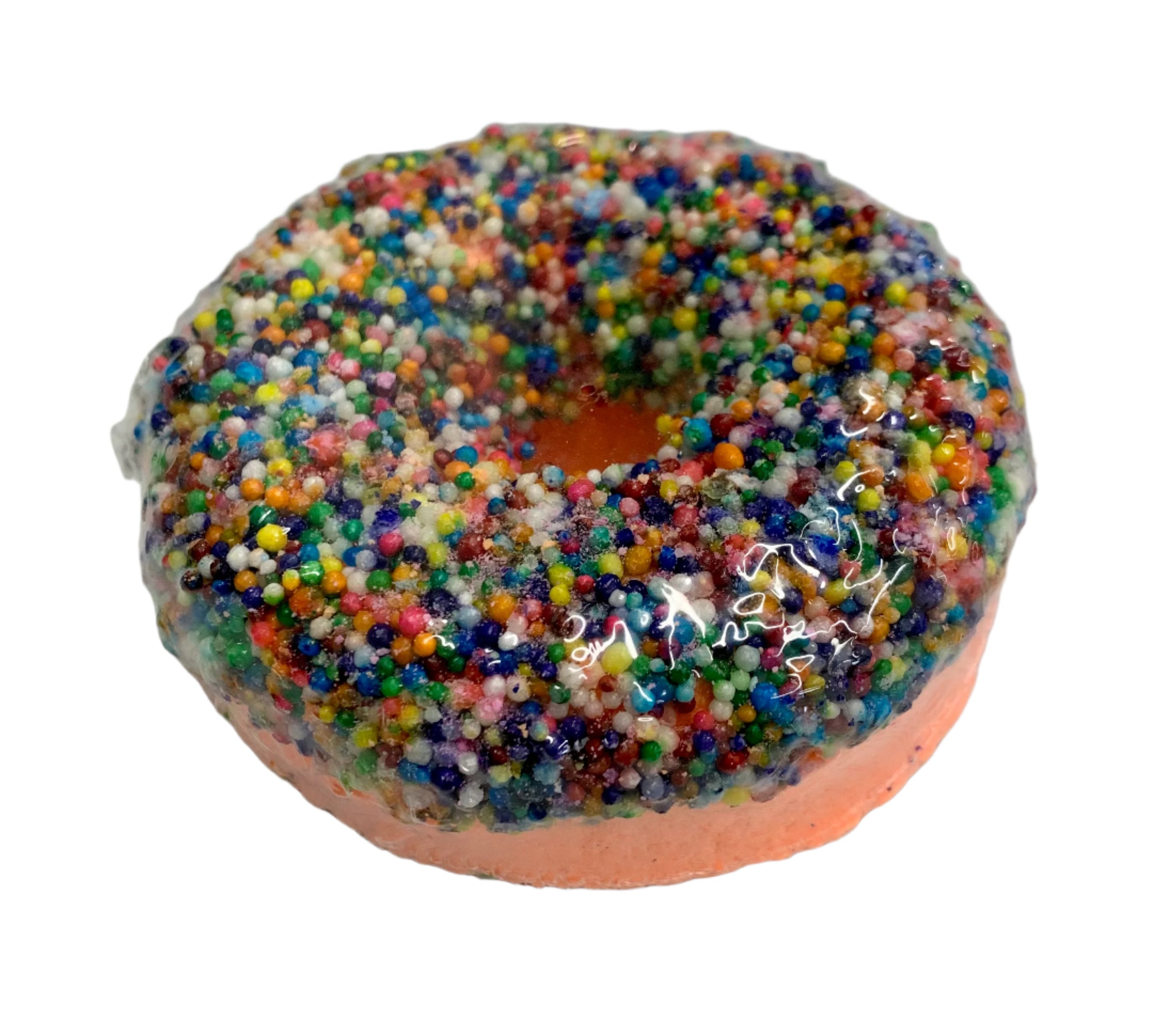 Hand pressed with epsom salt, shea butter and natural ingredients. Each donut is individually shrink wrapped with product label on the back. Sprinkles and scents will vary.  Made in United States of America.