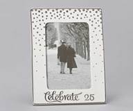 Commemorates this special anniversary with the inch celebrate 25 inch porcelain photo frame that has silver print and trim. It holds a 4 inch by 6 inch photo.