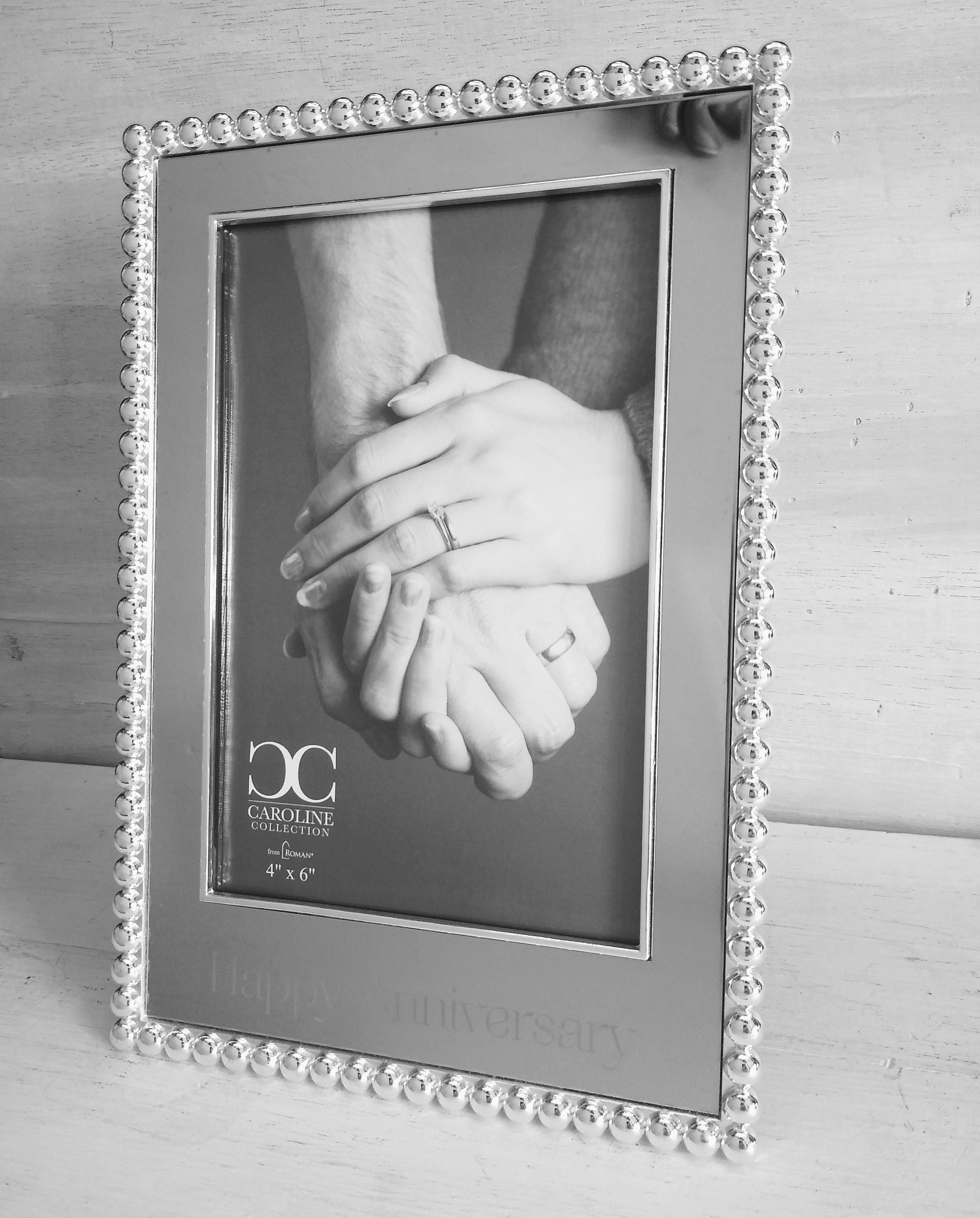 Silver happy anniversary frame with beaded border hold 4" x 6" phone. 8"H Metal.
