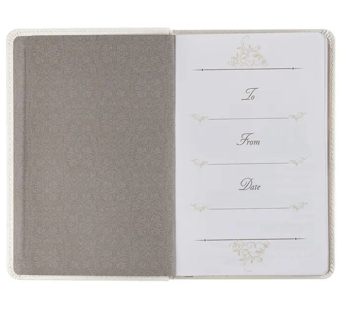 The Mr. & Mrs. 366 Devotions for Couples White Faux Leather Devotional is a great starting point for a new marriage and the perfect way to get into the habit of sharing your devotional time as a couple.