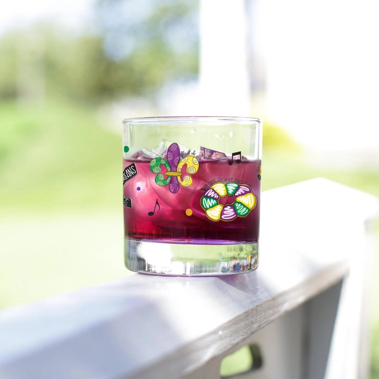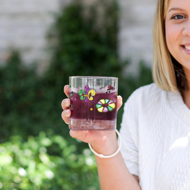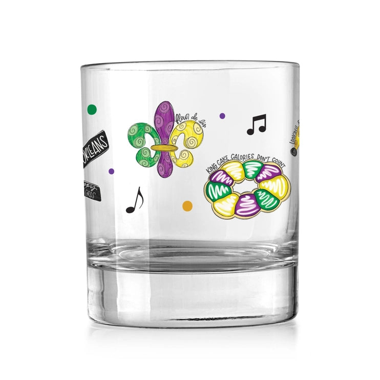 Our 11oz Mardi Gras Icons Rocks Glass is the perfect companion for savoring your favorite cocktails, relishing the complexity of a fine bourbon, or indulging in the timeless elegance of an Old Fashioned.