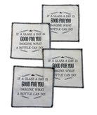 Dress up your cocktail party with our cotton cocktail napkins, a stylish alternative to paper.  Unique, lighthearted designs make these cotton cocktail napkins great conversation starters, sure to make everyone smile. Black overlock stitching compliments the black and white design. A perfect housewarming, host/hostess or gift for those who love to entertain.