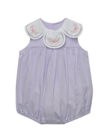 Introducing the Anna Mae Bubble in Violet Vines—a charming lavender bubble designed for the littlest of loves. This delightful piece features a crisp white petal collar adorned with embroidered pink bows, adding a touch of whimsy and elegance. Perfectly coordinated to match the big sister dress, it creates a cohesive, picture-perfect look for siblings. Crafted with attention to detail, this bubble combines comfort with sophisticated style, making it an ideal choice for special occasions or everyday elegance.