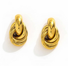 Embrace boldness and make a statement with intertwined Statement Studs. These earrings feature intertwining links and striking gold studs, adding an adventurous touch to any outfit. Dare to stand out and showcase your fearless style with these unique studs. .5" x 1" long, and a light weight of 5 grams per earring.