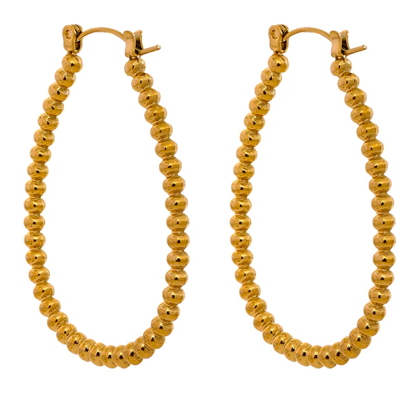 Water & Tarnish Resistant, 1 3/4" Long, 1.33" wide Beaded Hoops
