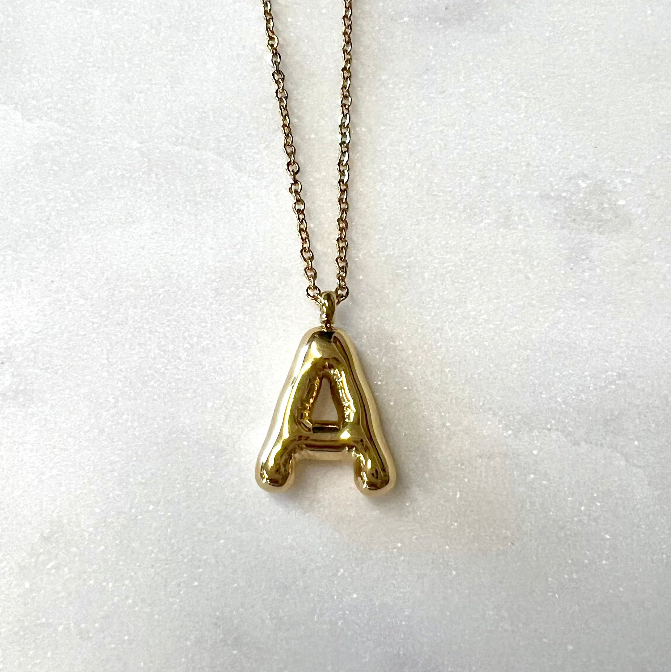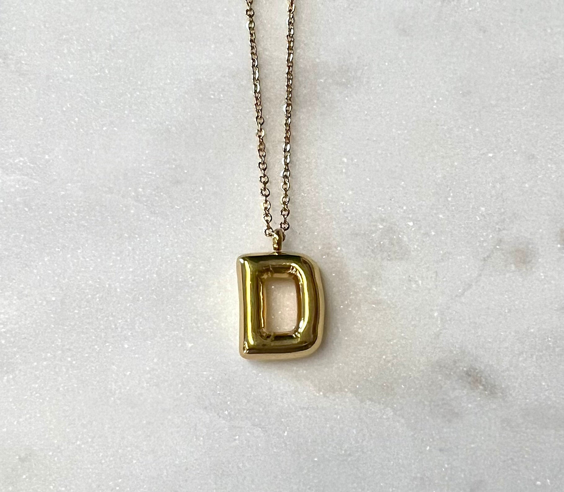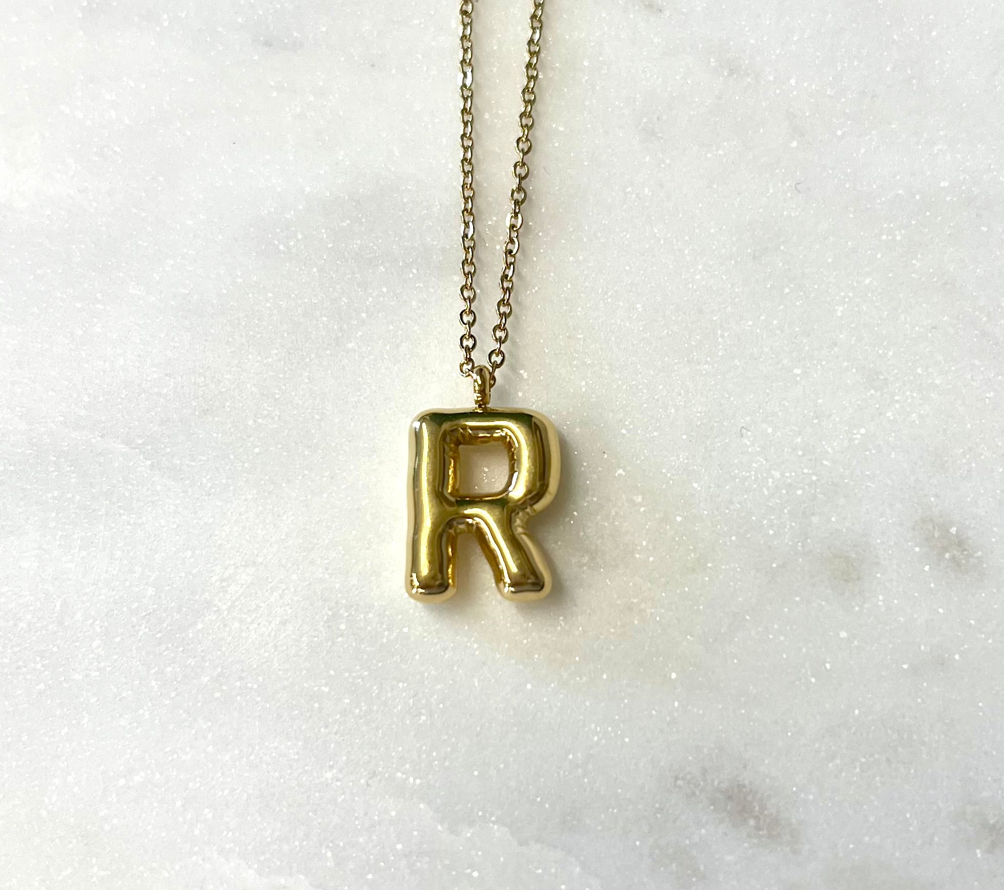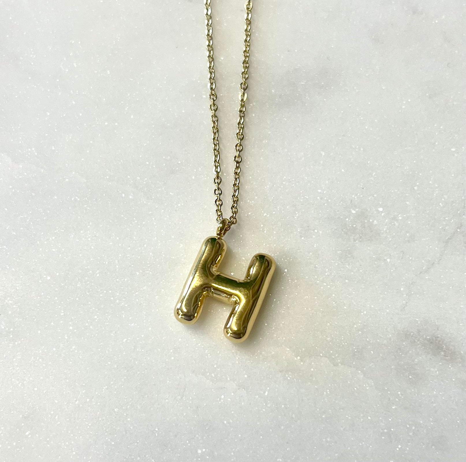 Personalize your style with our stunning bamboo initial necklace featuring large balloon-like pendants. Size 15x18mm, stainless steel, 18k gold PVD plated, and tarnish-free. Includes a 17.5-inch chain. Elevate your look with a touch of individuality.